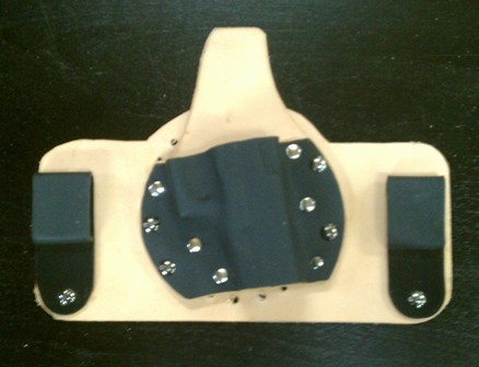 8-10 oz leather back with 360 degree attachment holes, kydex tuckable belt clips, leather/kydex pistol holster attached with removable post & screw attachment. The holster is also slotted for OWB carry