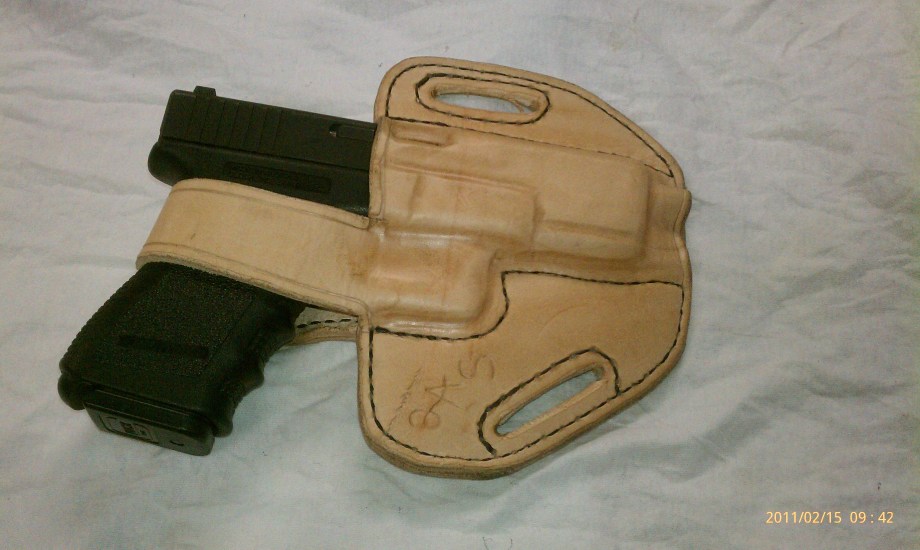 Glock 23 with retention strap. natural Leather